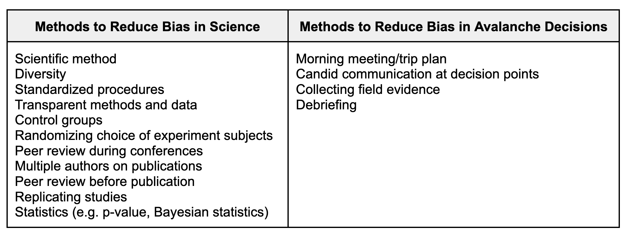 Both science and avalanche safety have established methods to reduce bias.
